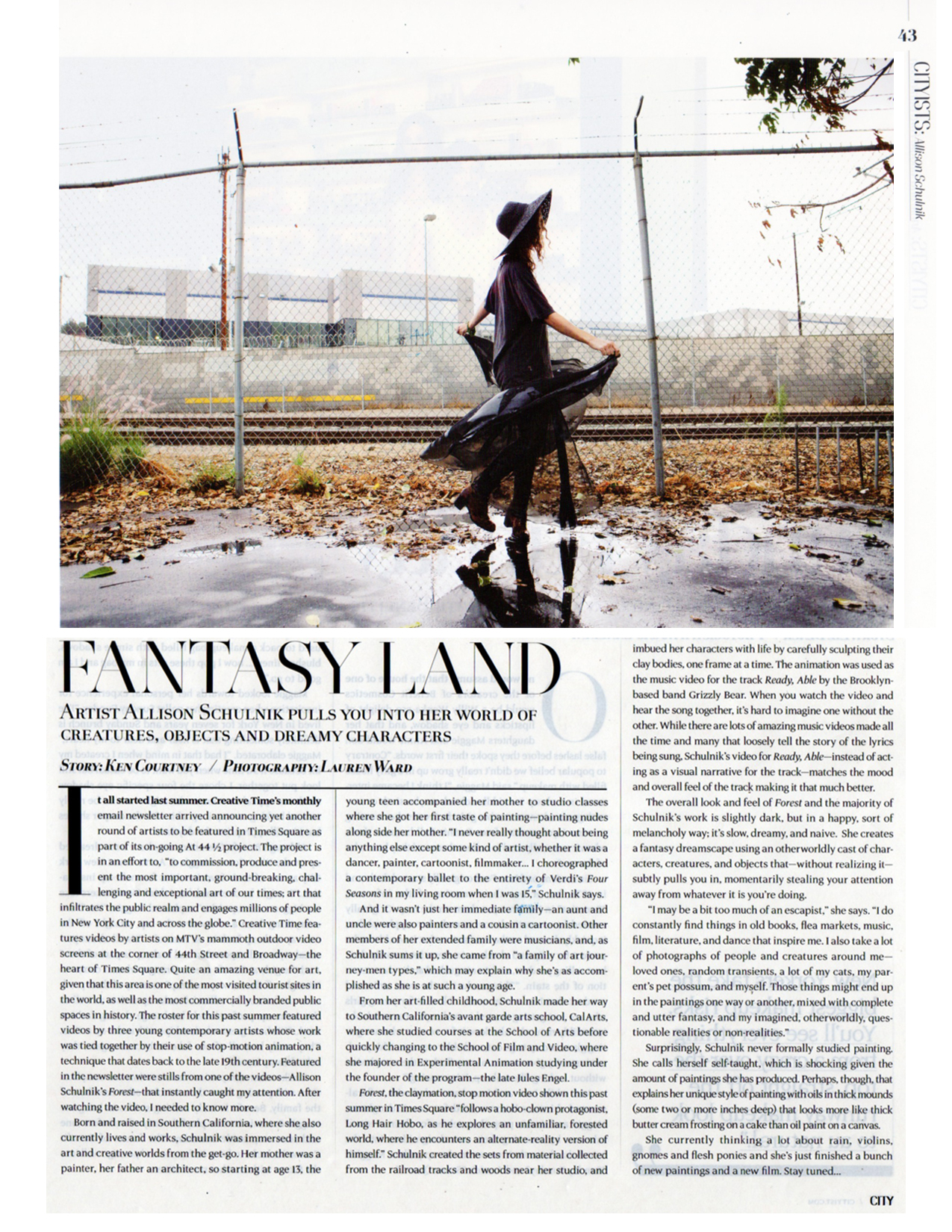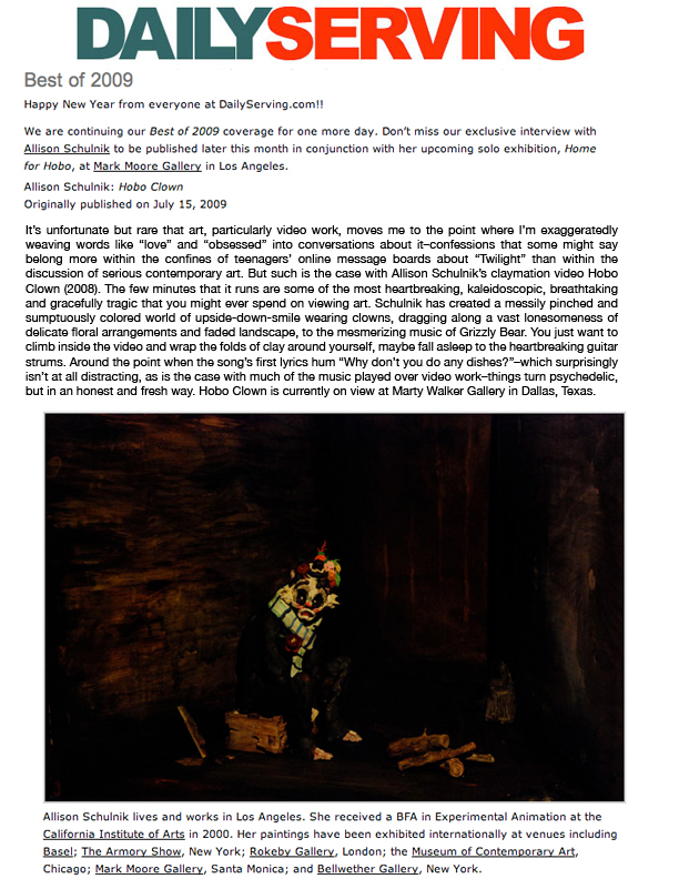 Schulnik has been making animated films since she was 17. Her films have been included in internationally renowned festivals and museums including the Hammer Museum, Los Angeles, LACMA, Annecy International Animated Film Festival and Animafest Zagreb. She received “Best Experimental Animation” at the Ottawa International Animation Festival and Special Jury Prize at SXSW FIlm.